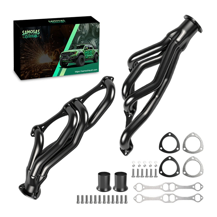 SAMexhaust headers are the perfect combination of quality and value. our exhaust headers made of high-quality T-304 stainless steel with CNC machine flanges of TIG and MIG welded construction. Computerized Mandrel-Bends bending maximizes the smoothest exhaust airflow for your vehicle and achieves better exhaust gas scavenging and reduced back pressure.
