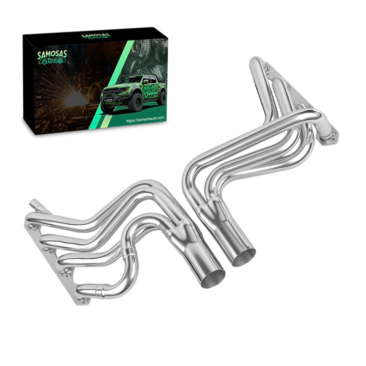 SAMexhaust headers are the perfect combination of quality and value. our exhaust headers made of high-quality T-304 stainless steel with CNC machine flanges of TIG and MIG welded construction. Computerized Mandrel-Bends bending maximizes the smoothest exhaust airflow for your vehicle and achieves better exhaust gas scavenging and reduced back pressure.