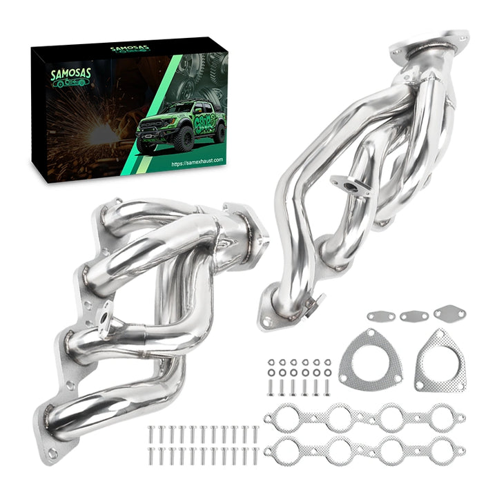 SAMexhaust headers are the perfect combination of quality and value. our exhaust headers made of high-quality T-304 stainless steel with CNC machine flanges of TIG and MIG welded construction. Computerized Mandrel-Bends bending maximizes the smoothest exhaust airflow for your vehicle and achieves better exhaust gas scavenging and reduced back pressure.