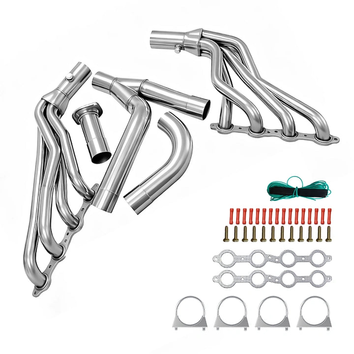 Stainless Long Tube Exhaust Header Y-Pipe Kit for 1999-2006 Chevy GMC GMT800 Silverado Sierra 1500,2WD