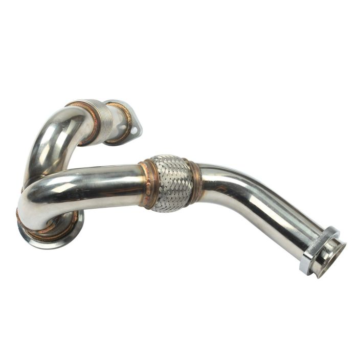 This turbocharger Y-pipe is designed to fit 2003-2007 Ford F250/F350 /F450/F550 Super Duty trucks with 6.0L V8 engines, as well as 2003-2005 Ford Excursions with 6.0L V8 engines. Made from T-304 stainless steel, this Y-pipe is built to last and features built-in flex pipes to increase longevity.