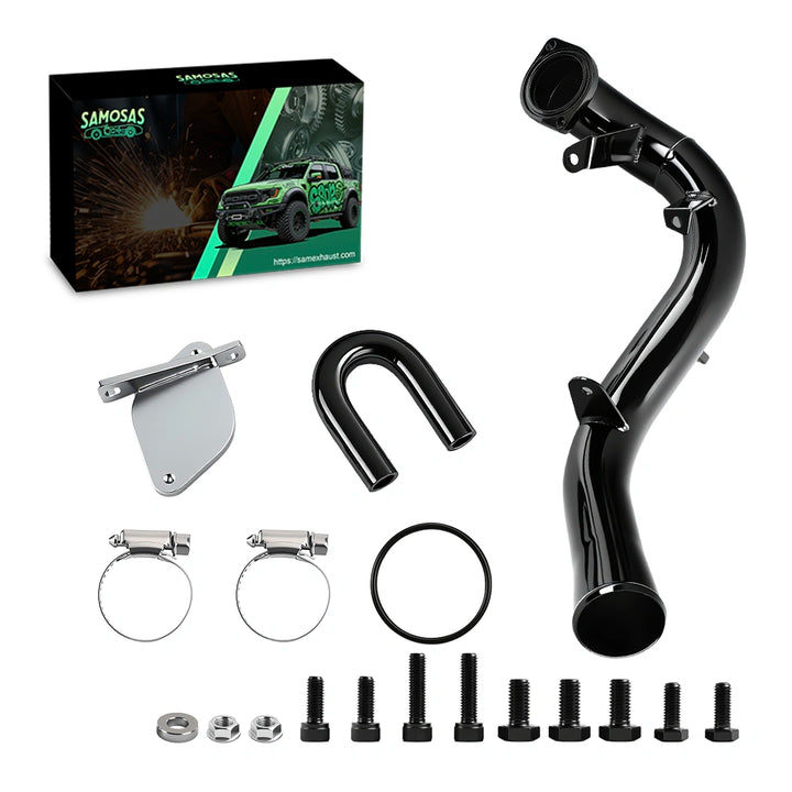 This Duramax LBZ 6.6L EGR delete kit is designed for a perfect fit and can directly replace the original equipment. The EGR delete kit includes a high-flow intake pipe that not only facilitates smoother coolant circulation but also achieves a temperature reduction of up to 5°C compared to standard EGR delete kits, enhancing the engine's thermal efficiency.