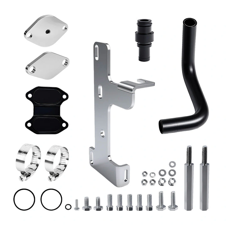 Experience enhanced engine performance and reliability with this high-quality EGR delete kit. Engineered to eliminate the problematic EGR system, it prevents carbon buildup in your engine while maintaining coolant system integrity. Manufactured from precision CNC-machined billet aluminum for superior durability and perfect fitment.