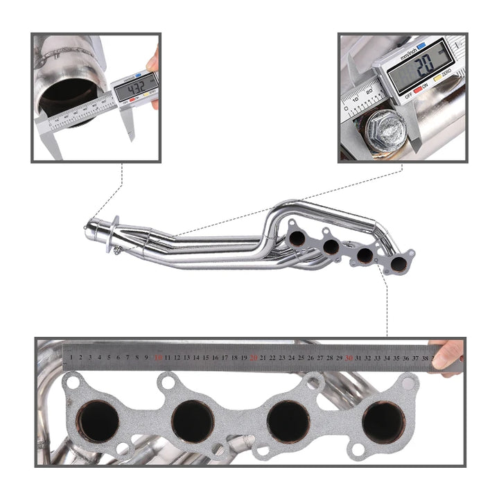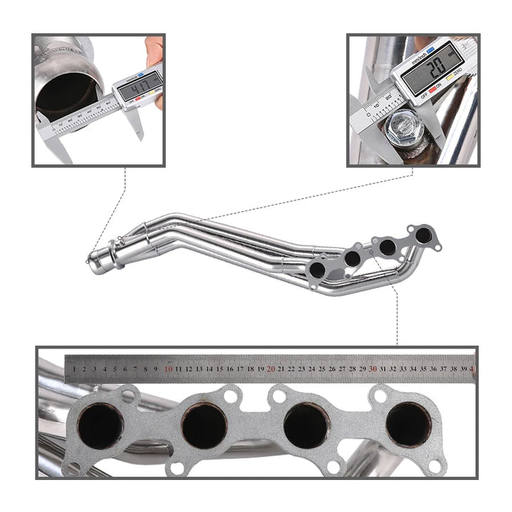 SAMexhaust headers are the perfect combination of quality and value. our exhaust headers made of high-quality T-304 stainless steel with CNC machine flanges of TIG and MIG welded construction. Computerized Mandrel-Bends bending maximizes the smoothest exhaust airflow for your vehicle and achieves better exhaust gas scavenging and reduced back pressure.