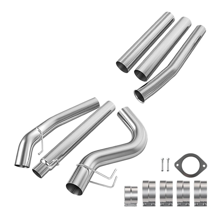 This 5" 6.7L Powerstroke Delete Exhaust System made from durable T409 stainless steel for maximum longevity. The race exhaust starts at the downpipe & allows the removal of the catalytic converter and DPF filter for off-road. OE style hangers for easy installation.