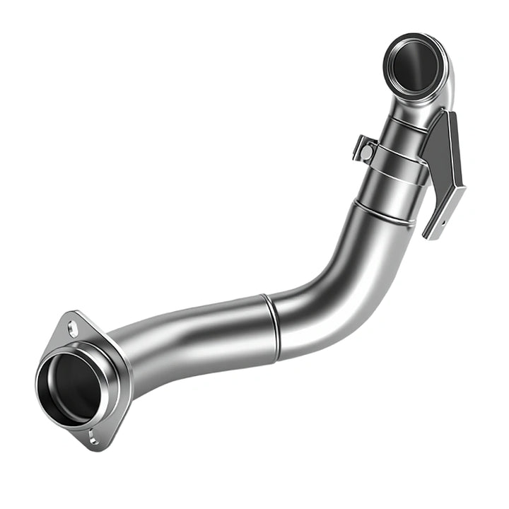 Made from top-quality **409 stainless steel**, our two-piece downpipe is a direct bolt-on replacement for your factory unit. It fits perfectly with both stock and aftermarket turbochargers, ensuring a hassle-free installation.