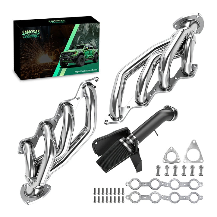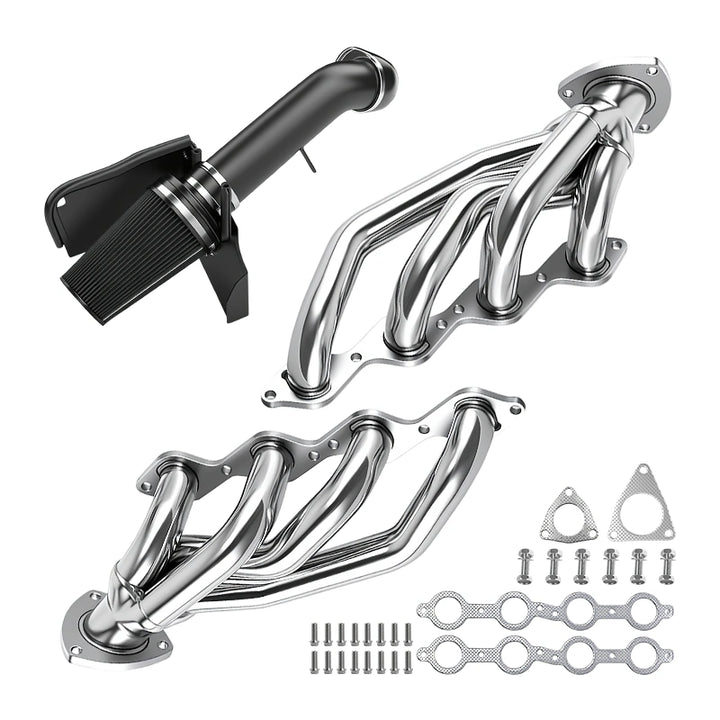 Black 4'' Cold Air Intake/Exhaust Header Kit for 99-06 Chevy GMC GMT800 Avalanche Silverado Sierra Tahoe 2WD