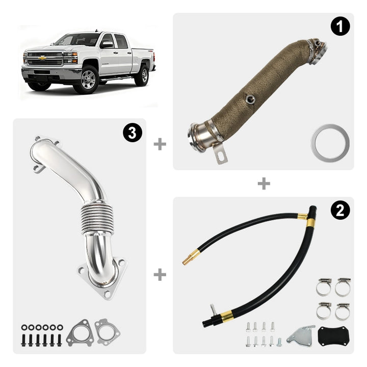 EGR & DPF & Downpipe & Un pipe for 2001-2016 Passenger Side Chevy GMC LML 6.6L Duramax 3"