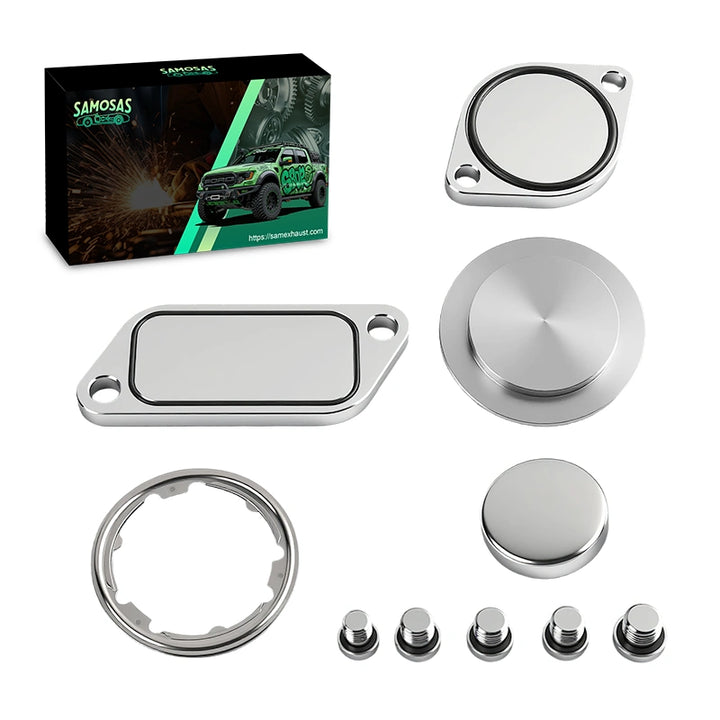 This kit includes plates and plugs to delete your EGR Valve AND EGR Cooler on the CM2250 and CM2350 Engines. Two plates in this kit are made of 6061 aircraft grade billet aluminum anodized and CNC laser cut or CNC machined out of high quality materials. Another 2 plates and 5 plug fittings are made of 304 stainless steel, which will not rust. All materials are durable to be better suitable for the engine environment.