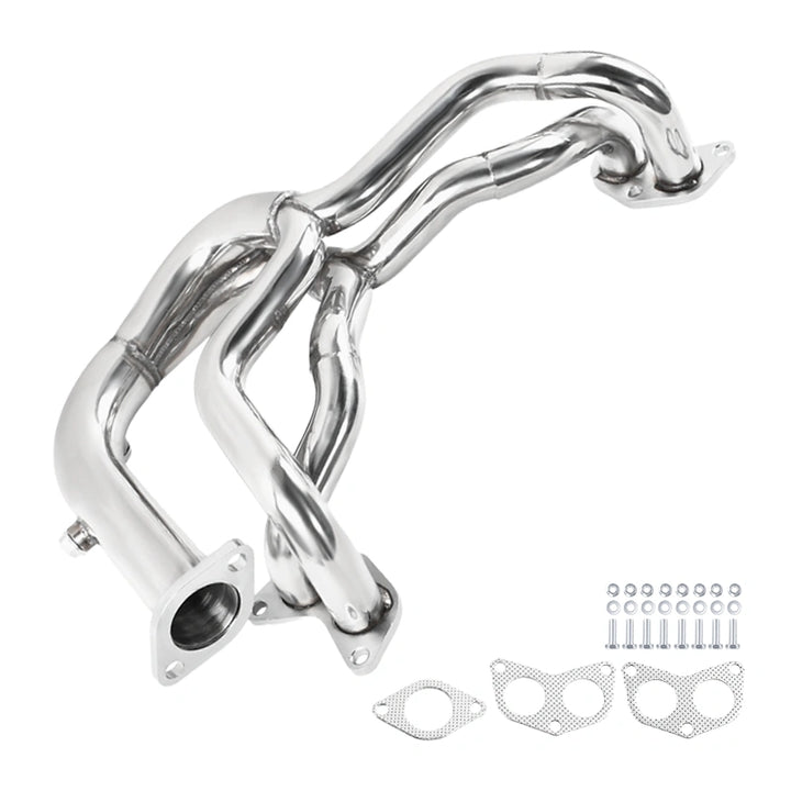This exhaust manifold replaces the restrictive OEM manifold with a stainless tubular version which has a much higher flow and releases more power from the engine. This is an un-equal length manifold so it will make the car sound more like an Impreza.