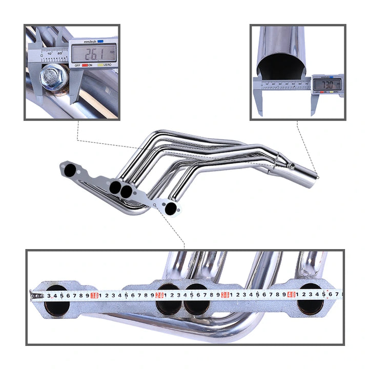 The exhaust manifolds found in the 1993-1997 Chevy Camaro and Pontiac Firebird Small Block engines were designed to combine the exhaust gasses from each of the cylinders quickly with a manifold that was cost-effective to produce. Tubing has been optimized for the 5.7(350ci) engine. This creates a reduction in cylinder backpressure and improved exhaust gas velocity. An added benefit is a more performance-oriented exhaust sound.